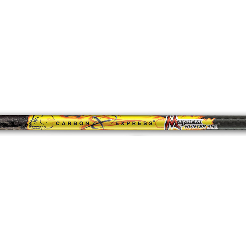The Mayhem® Hunter series is like 3 arrows in 1, engineered with our K-360°® Weave Technology to provide 360° spine consistency and deliver the ultimate combination of speed, accuracy and penetration. The Mayhem® Hunter is the COMPLETE performance package in a camouflage arrow. Featuring our exclusive Carbon Express® Built-in Weight Forward™ technology for superior downrange accuracy with a broadhead. Equipped with Blazer® vanes for precise broadhead placement and BullDog™ nock collars for added strength. We are setting a new standard for all-around hunting performance.