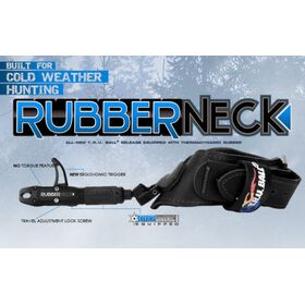 T.R.U. Ball® Rubberneck displays a new technology in the wrist strap release market. Featuring: ten degrees of side-to-side movement, eliminating any unwanted torque, a new Thermadynamic rubber placed on the sleeve and thumb grip allowing for warmth and traction during cold weather hunting. The Rubberneck also has a new ergonomic trigger and travel adjustment lock screw to secure adjustments. Simply pull the trigger to open the jaws, and let up on the trigger to close the jaws. Available with black annodized head in your choice of black leather buckle strap or camo Velcro® strap