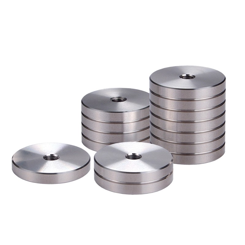 1 3/16" diameter solid stainless steel can be stacked for a custom balanced set up. It comes with various length of 1/4-20" Allen set screws.